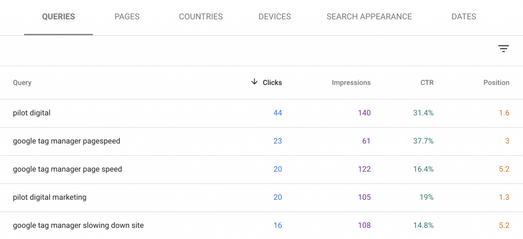 Get an idea of the digital environment your content currently occupies in order to determine your desired ranking. You should already have an idea of where you rank based on overall brand goals and/or client objectives. Performing a simple analysis within Google Search Console will give you a good idea of your current ranking.