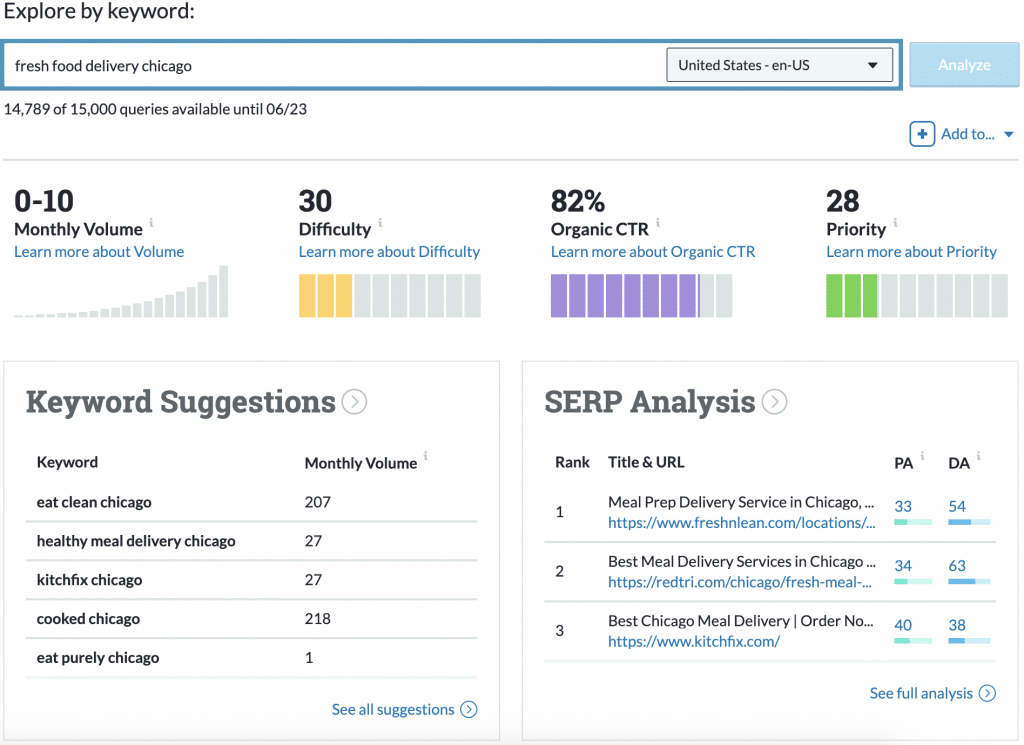 For example, let’s say you know you want to gather data for a food delivery service in Chicago. A possible category can be “Fresh Food Delivery Chicago.”