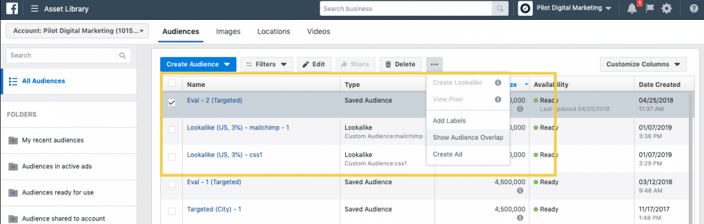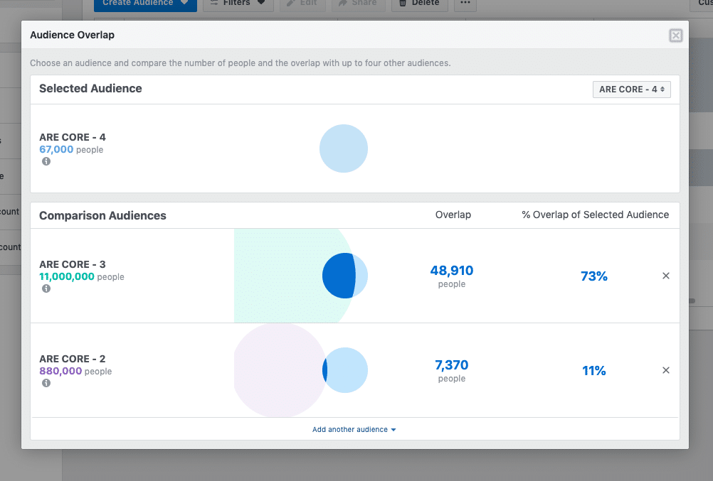 Lucky for us, the Audiences Tool in Ads Manager gives us the necessary information to identify occurrences of audience overlap, and also—if you know where to find it—the ability to avoid it altogether.