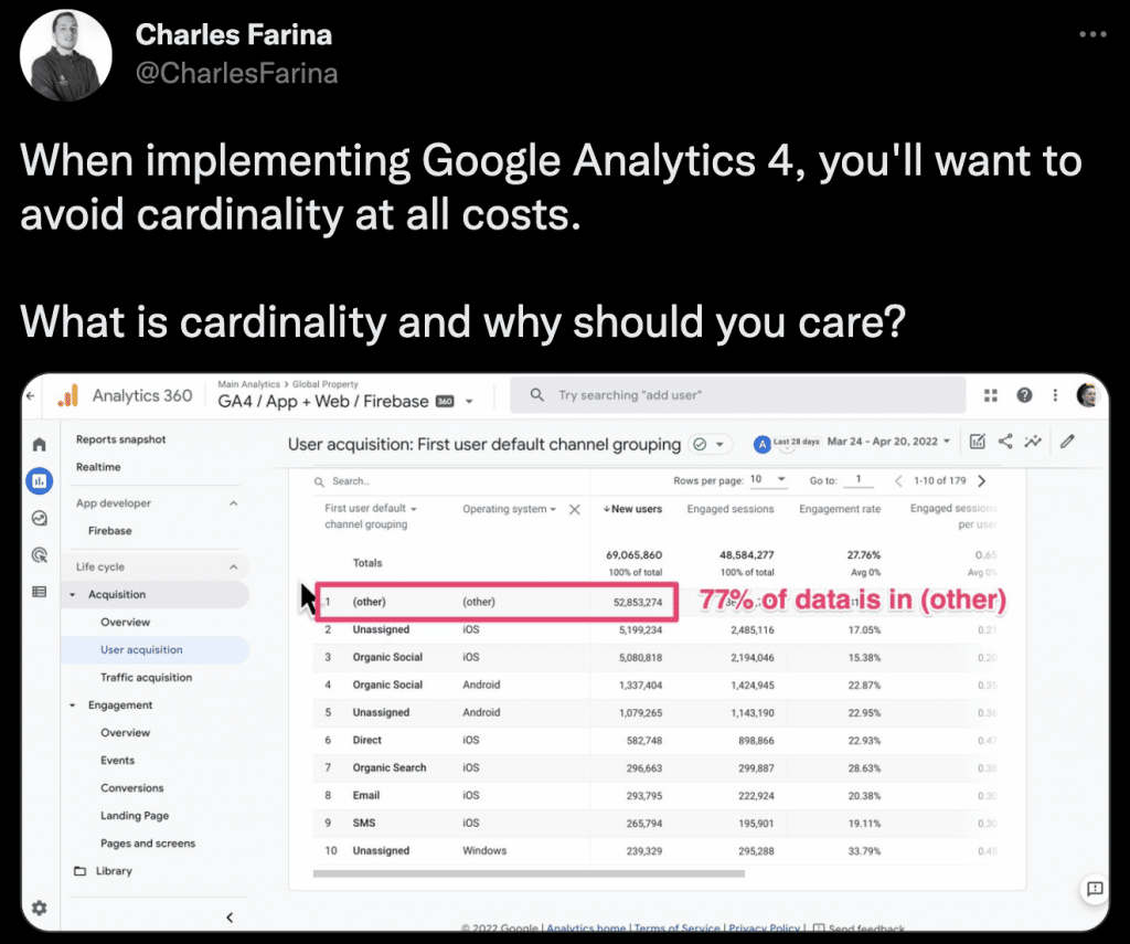The transition from Universal Analytics to Google Analytics 4 is a process we’ve been tackling for a large portion of 2022. In the process of migrating data, there may be some instances in which data is not translated in the best way. Thankfully there’s a large community of Analytics folks out there looking out for one another.