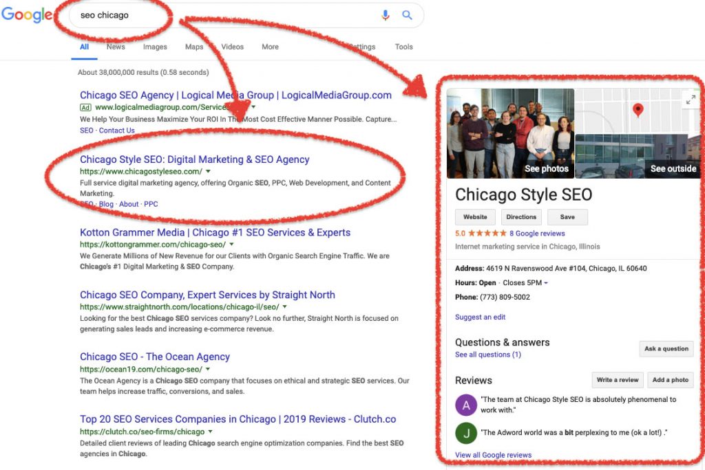 Every week we get phone calls from people saying, “I searched for SEO companies in Chicago and you were #1, so I figured you must know what you’re doing.” And they’re right—it’s the best possible demonstration of our abilities.