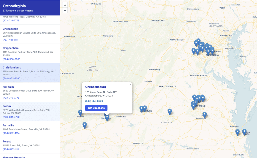 Click here to see the Google Sheet powering the above map. This simple, commonly used system makes for easy location management: edit (change hours of operation), add, and remove locations. You can also use Excel Online and WordPress custom post types to manage your HIPAA-compliant map.